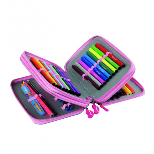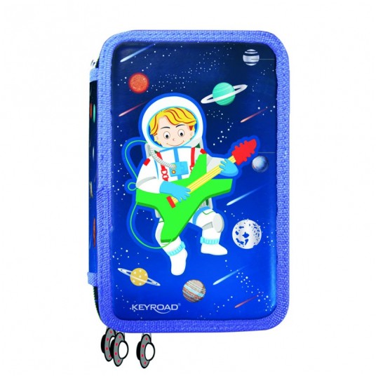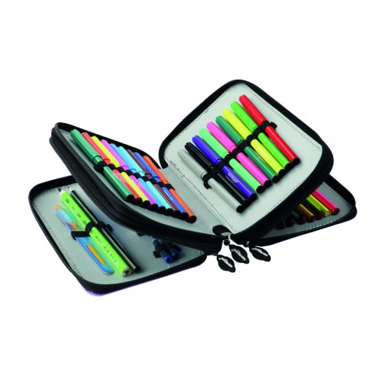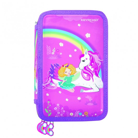 Piórnik KEYROAD, wyposażony, 3-komorowy, 52 elementy, 20,5x13,5x6 cm, mix kolorów