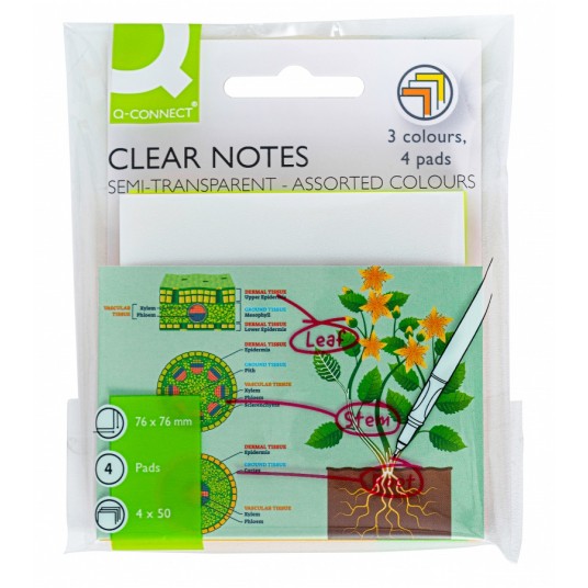 Bloczek samoprzylepny Q-CONNECT, półprzezroczysty, 76x76mm, 4x50k., mix kolorów