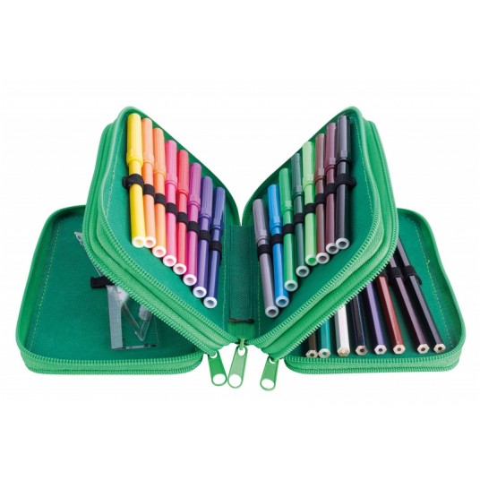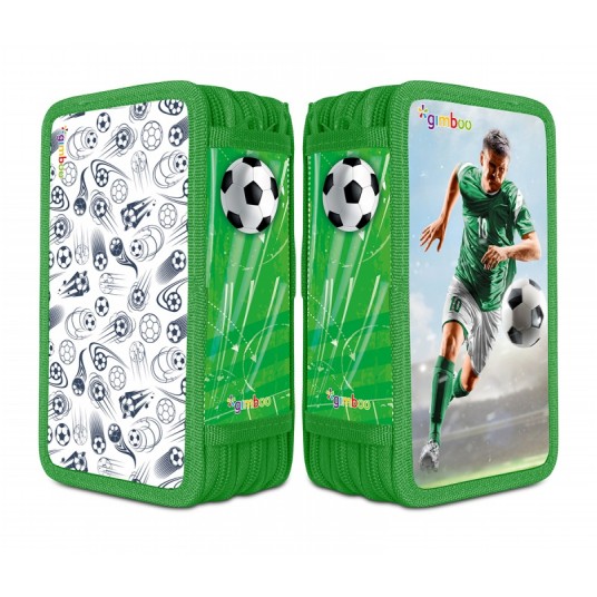 Piórnik szkolny GIMBOO, z wyposażeniem, 3 komory, piłka nożna, zielony