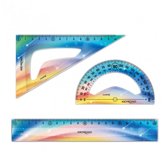 Zestaw geometryczny KEYROAD, Twilight, z linijką 20cm, mix kolorów