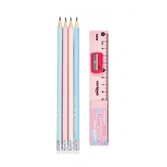 Zestaw szkolny KEYROAD, Pastel, 7 elementów, blister, mix kolorów