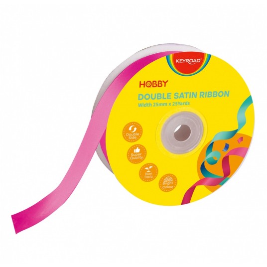 Wstążka KEYROAD, podwójna, satynowa, 25mm x 22,86m, na szpulce, różowa
