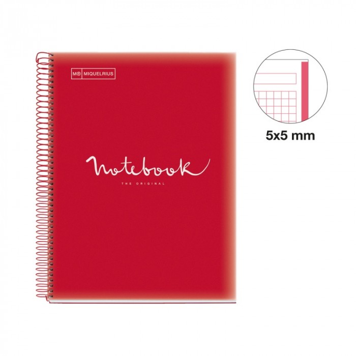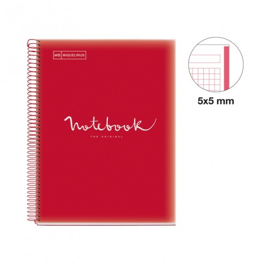 Kołozeszyt MIQUELRIUS NB-1 Emotions, PP, A4, w kratkę, 80 kart., 90g, czerwony