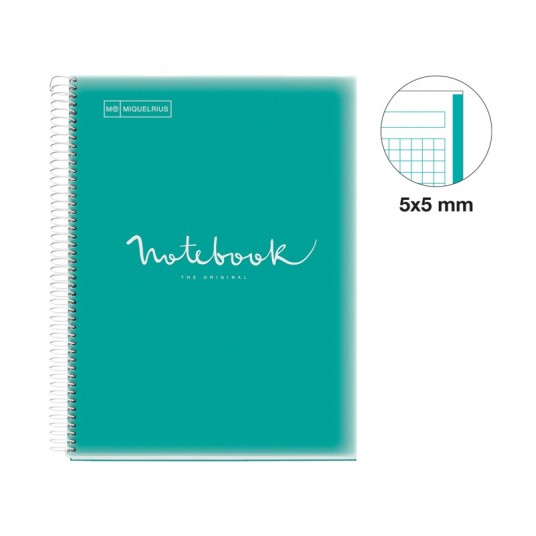 Kołozeszyt MIQUELRIUS NB-1 Emotions, PP, A4, w kratkę, 80 kart., 90g, turkusowy