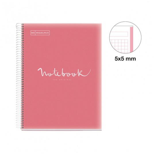 Kołozeszyt MIQUELRIUS NB-1 Emotions, PP, A4, w kratkę, 80 kart., 90g, koralowy