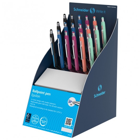 Display długopisów automatycznych SCHNEIDER Epsilon, XB, 18 szt., mix kolorów
