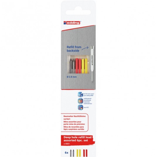 Wymienne wkłady e-8881 EDDING, do ołówka e-8880, 6 szt., blister, mix kolorów