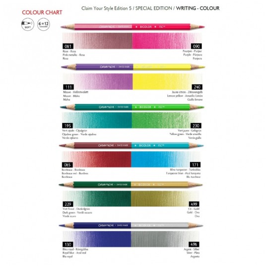 Kredki CARAN D'ACHE Bicolore Claim Your Style, Edycja 5, w pudełku, 6 szt.