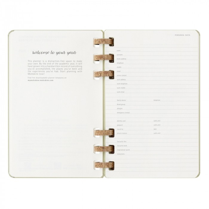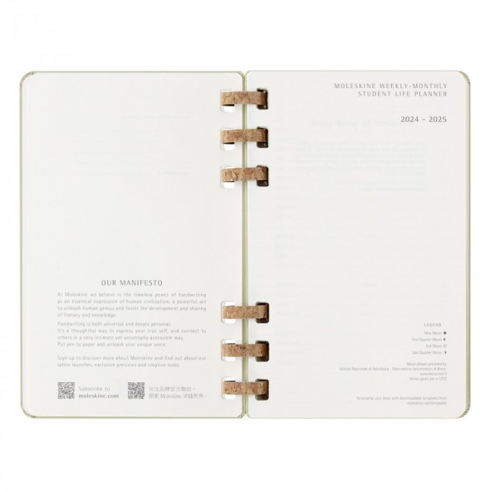 Kalendarz akademicki na spirali MOLESKINE lipiec 2024 - czerwiec 2025, L, twarda oprawa, 15x21cm, crush kiwi