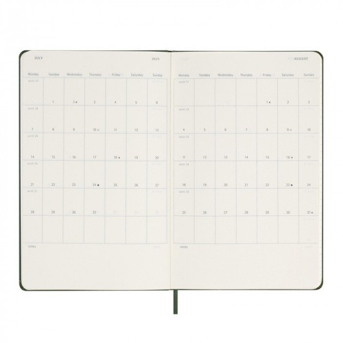 Kalendarz dzienny MOLESKINE 2025, 12M, L, twarda oprawa, 13x21cm, myrtle green