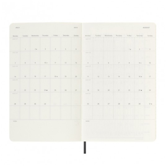 Kalendarz tygodniowy horyzontalny MOLESKINE 2025, 12M, L, miękka oprawa, 13x21cm, czarny