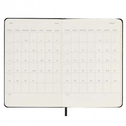 Kalendarz tygodniowy horyzontalny MOLESKINE 2025, 12M, P, twarda oprawa, 9x14cm, czarny
