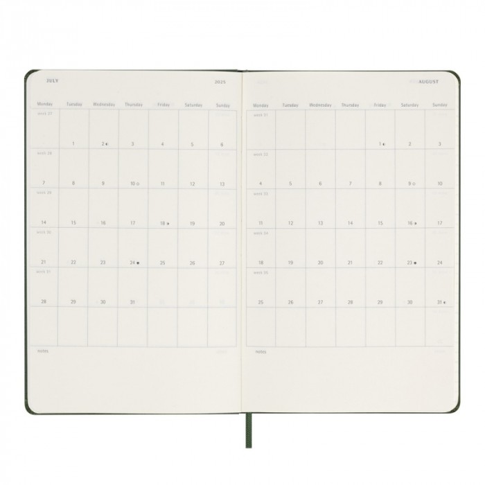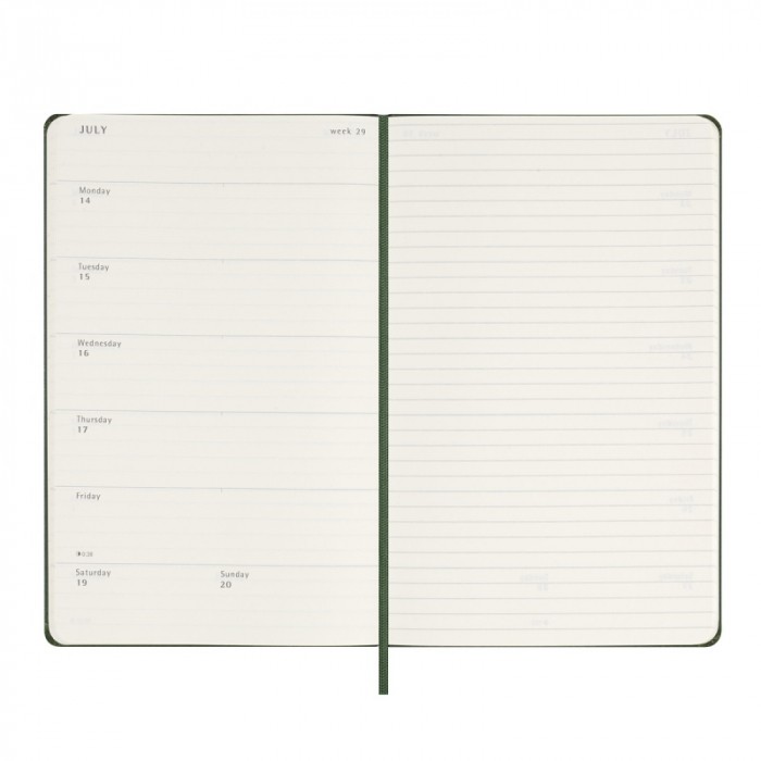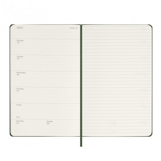 Kalendarz tygodniowy MOLESKINE 2025, 12M, L, twarda oprawa, 13x21cm, myrtle green