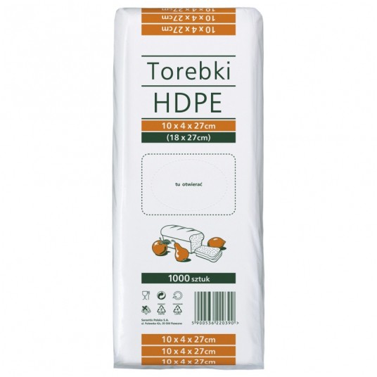 Torebki spożywcze HDPE, 10x4x27cm, 1000 szt., transparentne