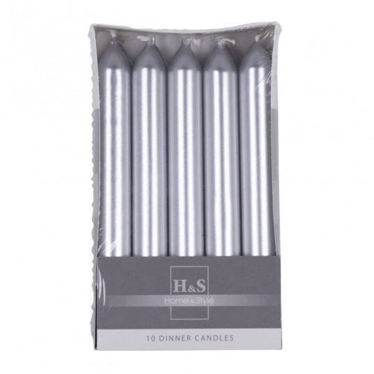 Świeca stołowa Donau Home 20×170 mm – zestaw 10 szt srebrna ✨