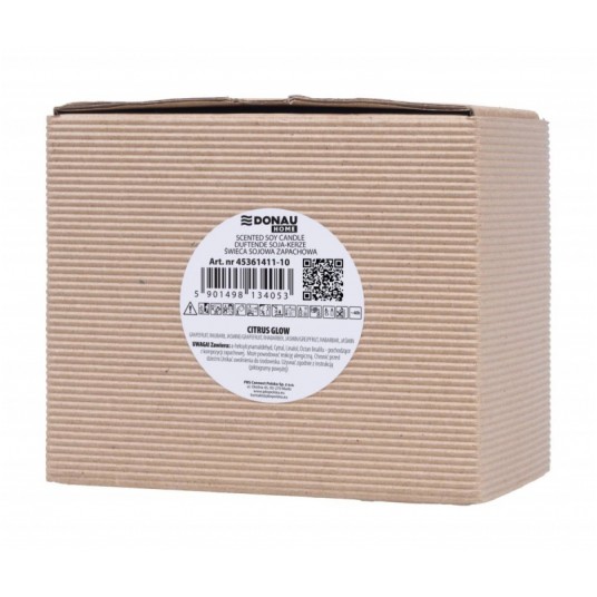 Świeca sojowa Donau Home Citrus Glow to energetyzujący i stylowy akcent do każdego wnętrza. Umieszczona w eleganckim szklanym słoiku z pokrywką, łączy nowoczesny design z naturalnym woskiem sojowym ⚙️. Dzięki drewnianemu knotowi świeca pali się czysto, równomiernie i trwa ok. 40 godzin, tworząc przyjemne, miękkie światło. To idealne uzupełnienie salonu, kuchni lub łazienki – a także doskonały pomysł na prezent ✂️.