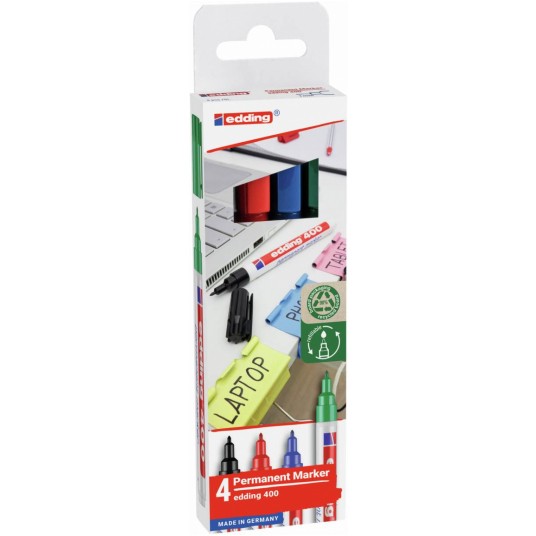 Marker permanentny e-400 EDDING, 1 mm, 4 szt., mix kolorów