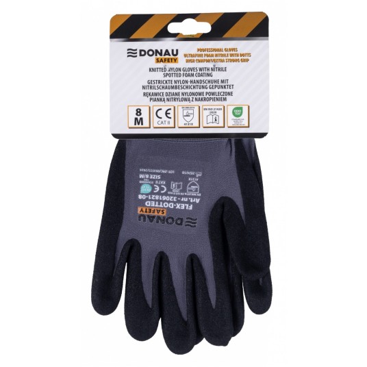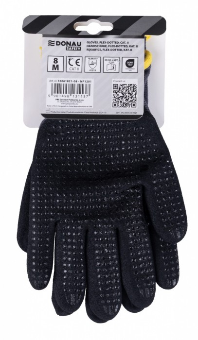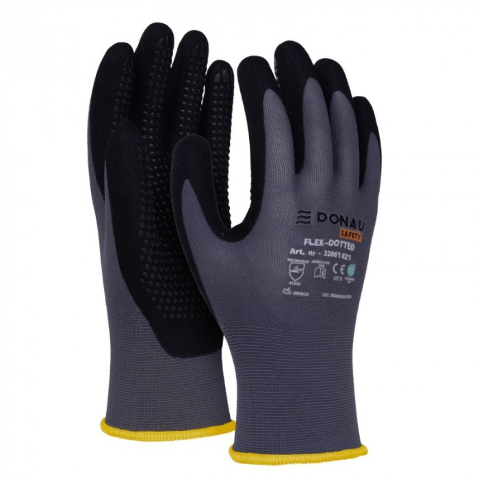 Rękawice DONAU Safety Flex Dotted rozm. 8 wyróżniają się doskonałą ergonomią, solidnym wykonaniem i nowoczesnym wyglądem – idealne do wszechstronnych zastosowań.