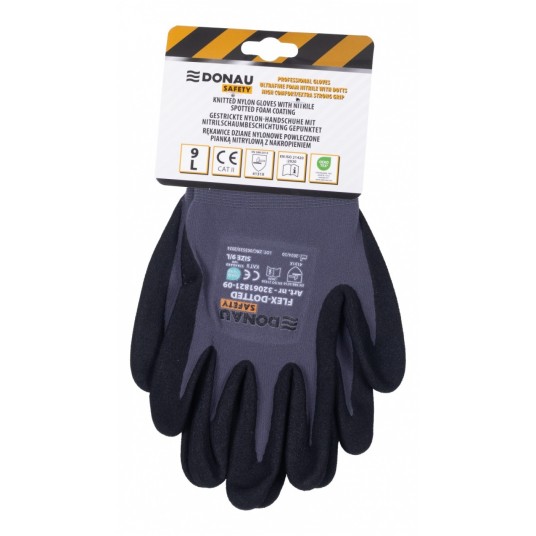 Rękawice DONAU Safety Flex Dotted rozm. 9 – perfekcyjny chwyt i wysoka ochrona ✋