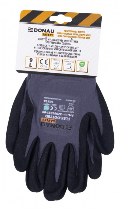 Rękawice DONAU Safety Flex Dotted w rozmiarze 9 to niezawodne wsparcie podczas intensywnych prac manualnych. Dzięki nakropieniu w części chwytnej oraz powłoce z ultradrobnej pianki nitrylowej zapewniają wyjątkową przyczepność i trwałość. Są lekkie, elastyczne i oddychające – idealne do codziennego użytkowania w różnych branżach i warunkach. ✨ Doskonałe dopasowanie do dłoni gwarantuje pełen komfort pracy i swobodę ruchu.