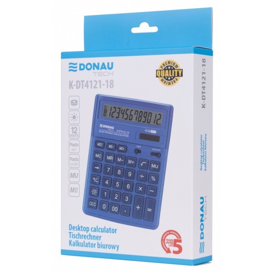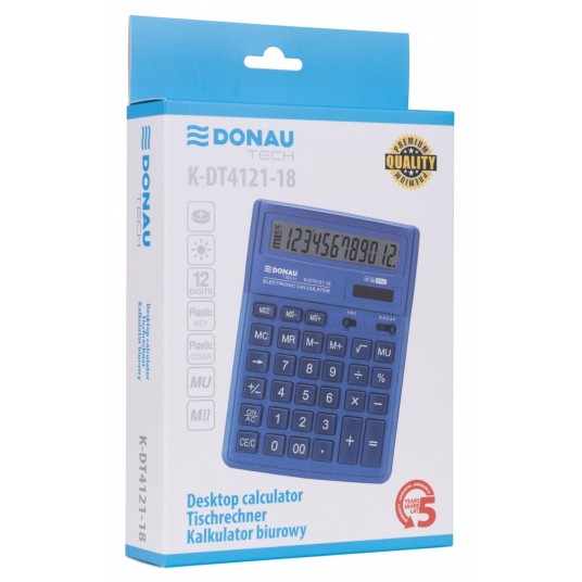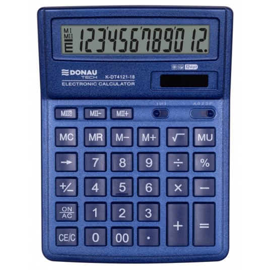 Kalkulator biurowy DONAU TECH, CI-SDC444XRNVE, 12-cyfr. wyświetlacz, wym. 190x143x40 mm, granatowy
