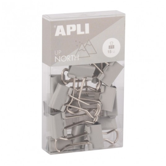 Klipy do dokumentów APLI Up North, 19mm, 15szt, pudełko z zawieszką, szare