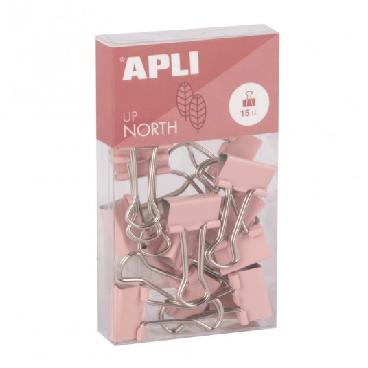 Klipy do dokumentów APLI Up North, 19mm, 15szt, pudełko z zawieszką, różowe