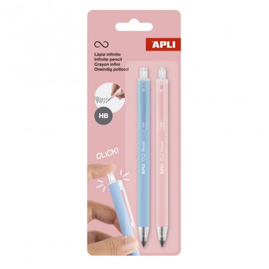 Ołówek automatyczny wieczny APLI Infinite, HB, blister, niebieski+różowy