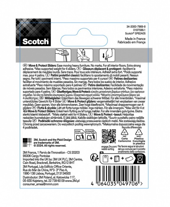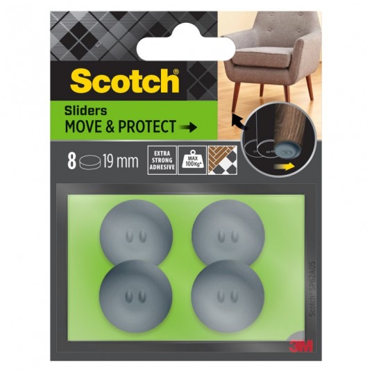 Samoprzylepne podkładki ochronno-ślizgowe SCOTCH, okrągłe, 19mm, 8 szt., szare