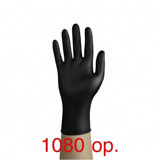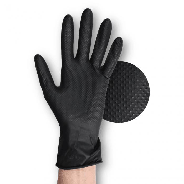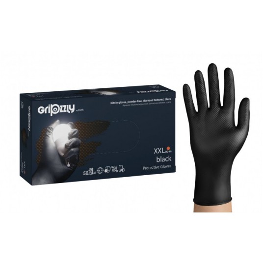 Rękawice Gripzzly nitrylowe, bezpudrowe, z diamentową teksturą, czarne, Rozm. L, 50 szt.