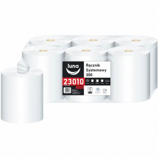 Ręcznik papierowy Luna Center Pull 1-warstwowy 300m biały 6 rolek
