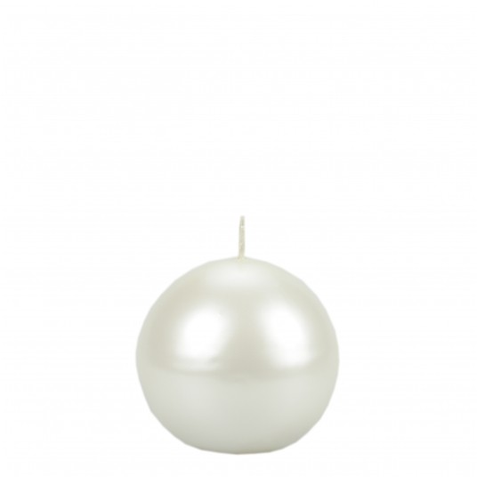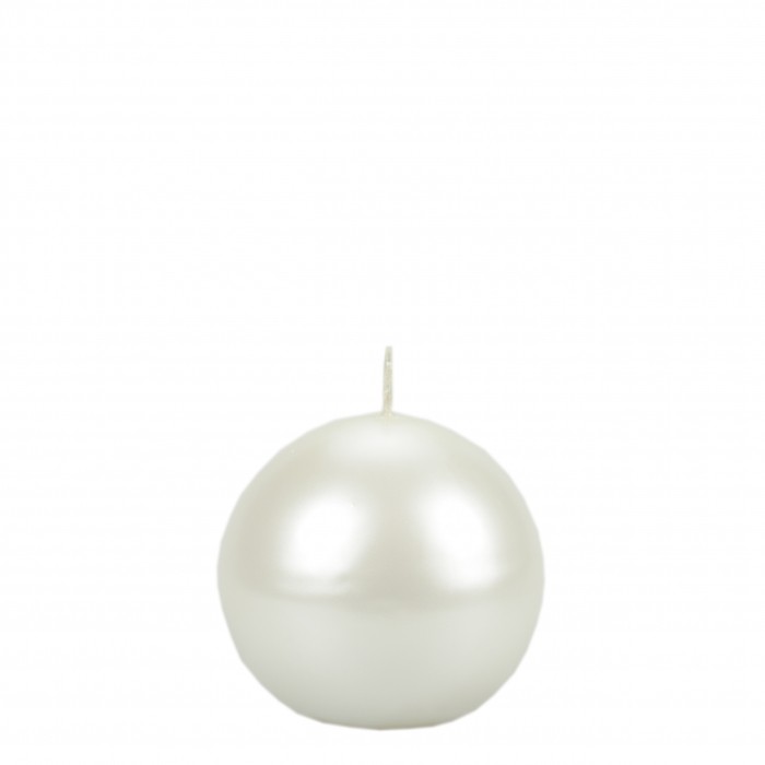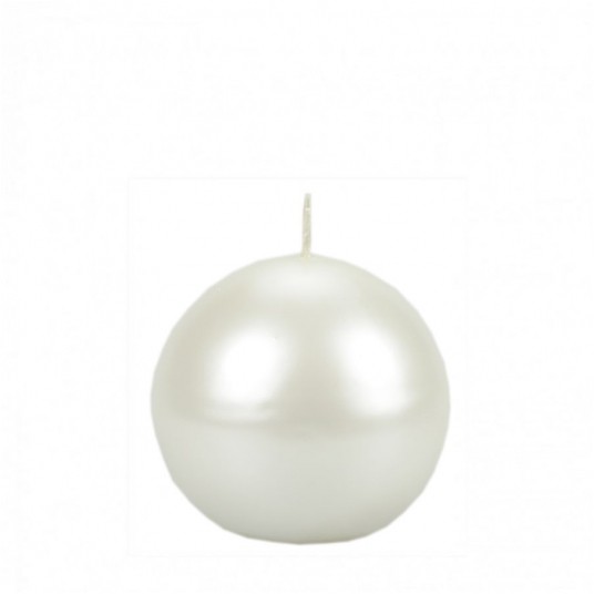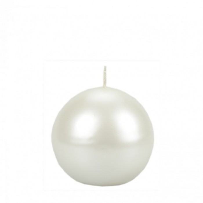 Biała metalizowana świeca‑kula Ø 60 mm łączy minimalistyczną formę z eleganckim wykończeniem – idealna do nowoczesnych i luksusowych aranżacji.