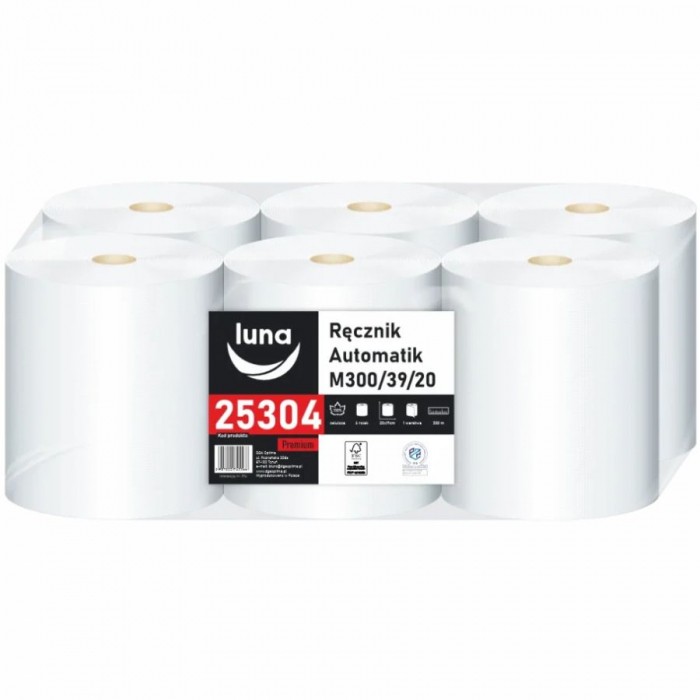 Ręcznik papierowy Luna Automatik M300/39/20 1-warstwowy biały 6 rolek