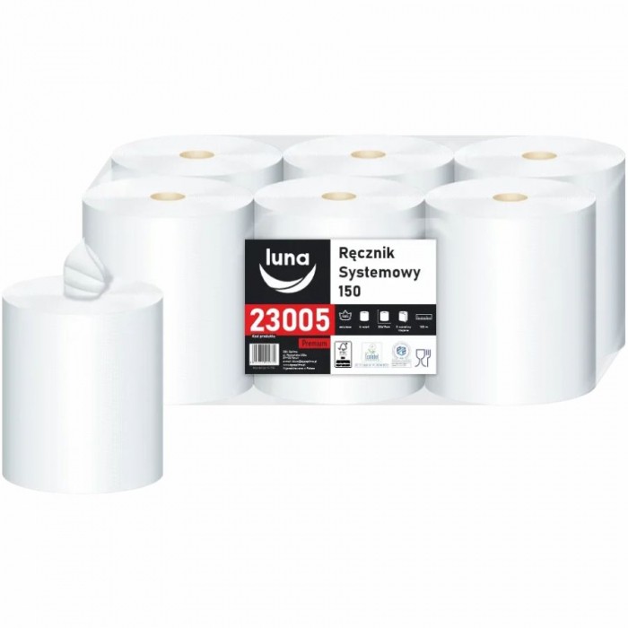 Ręcznik papierowy Luna Center Pull 2-warstwowy 150m biały 6 rolek