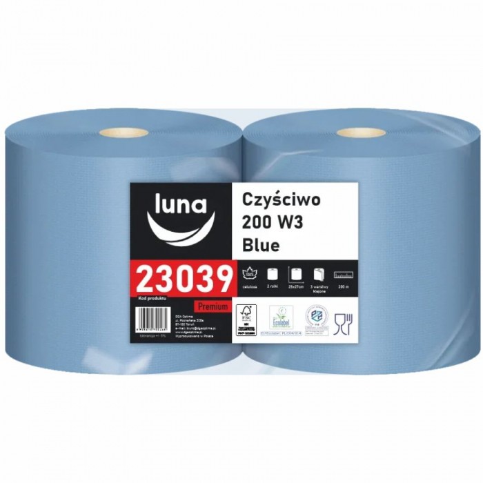Czyściwo Luna 3-warstwowe niebieskie 200m 2 rolki premium