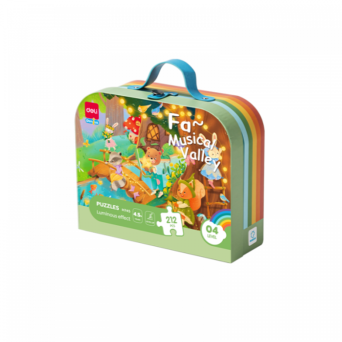 Puzzle Deli EH745 to kolorowa układanka, która łączy zabawę z nauką. Dzięki wysokiej jakości drukowi ilustracje są wyraźne i pełne szczegółów, co przyciąga uwagę dziecka i wspiera koncentrację. Intensywne kolory z efektem świetlnym sprawiają, że układanka jest jeszcze bardziej atrakcyjna i inspiruje do spędzania czasu w twórczy sposób. Zestaw składa się z 212 elementów wykonanych z grubej, białej tektury, która jest odporna na zginanie i zapewnia długą trwałość ✅
