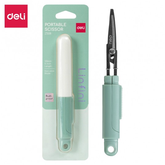 Kompaktowe nożyczki Deli Linfini EZ508 w kolorze zielonym to praktyczne i bezpieczne narzędzie do cięcia papieru i innych materiałów. Dzięki długości 125 mm są poręczne i wygodne w przenoszeniu, a ostrza ze stali nierdzewnej z powłoką antyadhezyjną zapobiegają przyklejaniu się materiału. Ergonomiczne uchwyty z plastiku ABS zapewniają komfort pracy, a zaokrąglone końcówki podnoszą poziom bezpieczeństwa. Idealny wybór do szkoły, biura i domu ✅