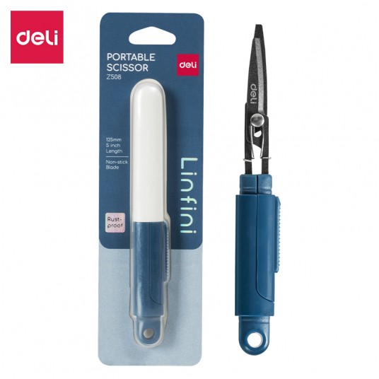 Kompaktowe nożyczki Deli Linfini EZ508 w kolorze niebieskim to niezawodne narzędzie do codziennych zadań w domu, biurze i szkole. Dzięki długości 125 mm są poręczne i łatwe do przenoszenia, a ostrza ze stali nierdzewnej z powłoką antyadhezyjną zapobiegają przyklejaniu się materiału. Ergonomiczne uchwyty z plastiku ABS zapewniają wygodę, a zaokrąglone końcówki zwiększają bezpieczeństwo użytkowania. To praktyczne nożyczki, które łączą trwałość, komfort i estetyczny wygląd ✅