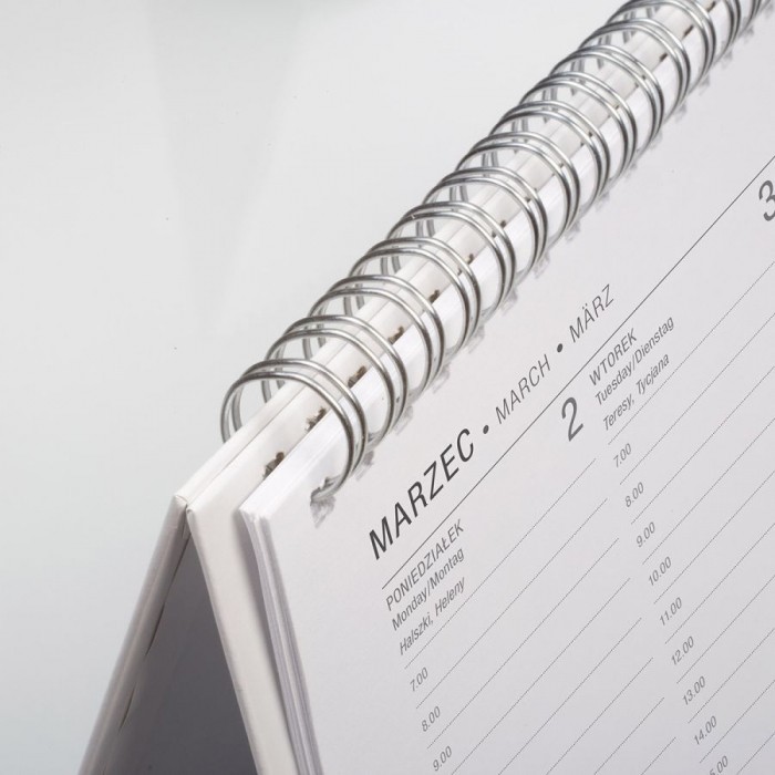 Kalendarz A4 Fobos łączy przejrzystość tygodniowego widoku z użytecznymi dodatkami, które oszczędzają czas przy planowaniu. Zaprojektowany tak, by na biurku zajmował mało miejsca i był zawsze „pod ręką”.