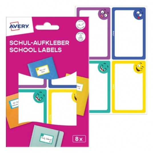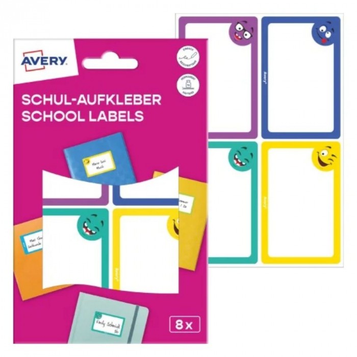 Zestaw 8 kolorowych naklejek Avery z wesołymi buźkami to świetny sposób na personalizację zeszytów, książek i przyborów szkolnych. Dzięki trwałemu klejowi naklejki pewnie trzymają się papieru i innych gładkich powierzchni, a ich barwne wzory przyciągają wzrok i ułatwiają identyfikację. ✅ To praktyczny i jednocześnie zabawny element wyposażenia ucznia, przedszkolaka czy nawet pracowni artystycznej.