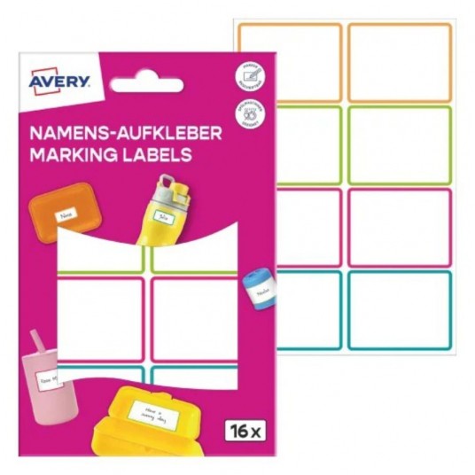 Zestaw 16 kolorowych naklejek Avery to praktyczne rozwiązanie do oznaczania przedmiotów codziennego użytku w szkole, przedszkolu czy domu. Dzięki wodoodpornej folii nadają się do mycia w zmywarce i zachowują trwałość nawet przy częstym użytkowaniu. ✅ Naklejki są łatwe do opisania ręcznie i idealnie sprawdzają się do personalizacji rzeczy dziecka lub organizacji w domu i biurze.