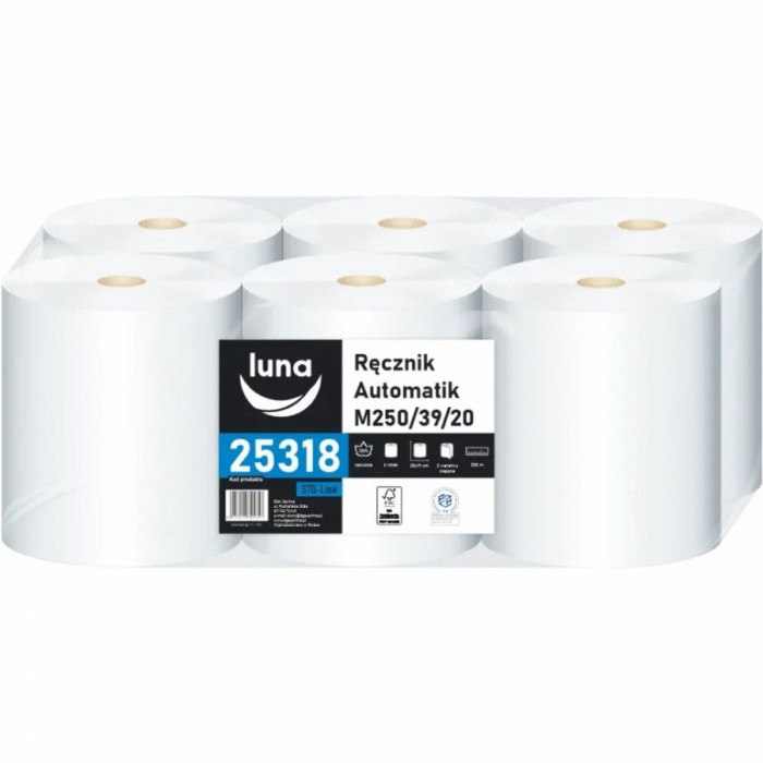 Ręcznik papierowy Luna Automatik M250/39/20 2-warstwowy biały 6 rolek