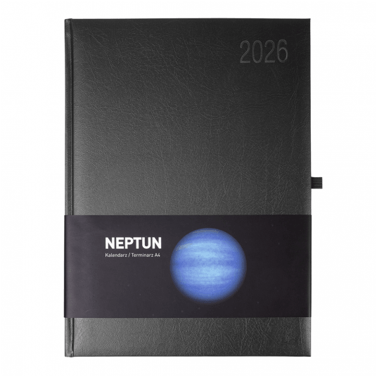 Kalendarz A4 dzienny 2026 Neptun czarny (zakup 25-49 sztuk) + grawer -- towar sezonowy dostępny tylko do wyczerpania stanów