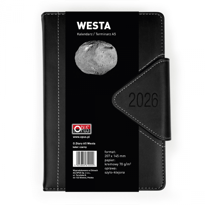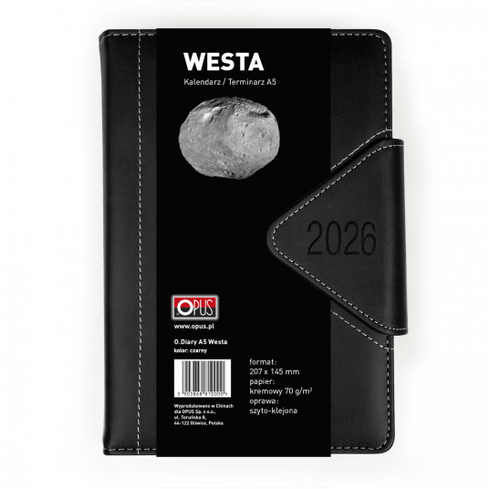 Kalendarz A5 dzienny Westa czarny 2026 z grawerem dostępny jest w naszej ofercie wysyłkowej na terenie całej Polski. Produkt sezonowy – zamów w tym progu już dziś, by zapewnić sobie atrakcyjne warunki.
