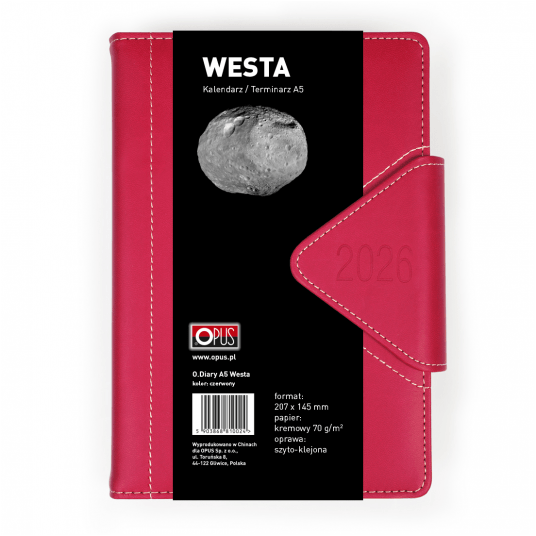 Kalendarz A5 dzienny Westa czerwony 2026 to praktyczne i eleganckie narzędzie, które doskonale sprawdzi się w codziennej organizacji. Intensywna czerwona oprawa i funkcjonalny układ stron sprawiają, że to niezawodny wybór do biura i użytku prywatnego.