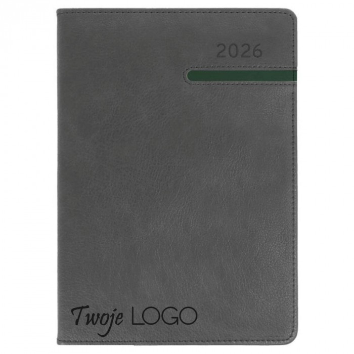 Kalendarz książkowy A4 dzienny Combo grafitowy z zielonym paskiem (zakup 1-9 sztuk) + grawer -- towar sezonowy dostępny tylko do wyczerpania stanów