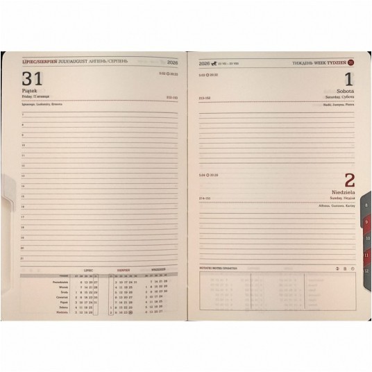 Kalendarz A5 tygodniowy z zapięciem Hologram to połączenie stylu, elegancji i praktyczności w jednym. Twarda oprawa z holograficznym efektem przyciąga wzrok i nadaje mu nowoczesnego charakteru. Układ tygodniowy z rozkładem na dwóch stronach ułatwia planowanie obowiązków, a papier chamois o wysokiej gramaturze zapewnia komfort pisania. Dzięki licznym dodatkom, takim jak notes, mapa czy miejsce na długopis, ten kalendarz stanie się niezastąpionym towarzyszem każdego dnia ☀️.