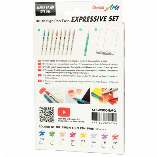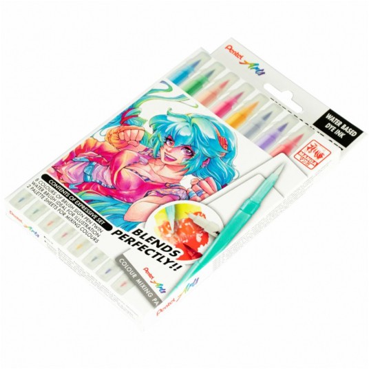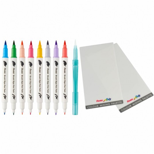 Zestaw pisaków pędzelkowych Pentel Brush Sign Pen Twin Manga Set 8 kolorów