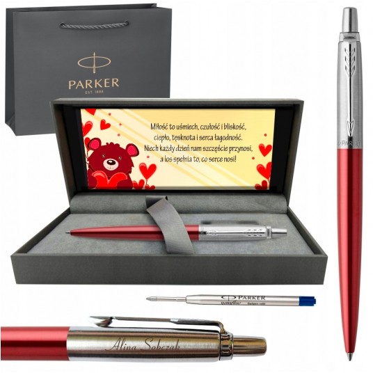 Zestaw prezentowy długopis Parker Jotter Kensington Red CT z grawerem na Dzień Kobiet