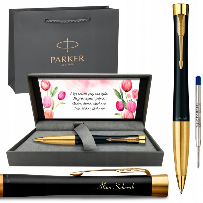 Zestaw prezentowy długopis Parker Urban Muted Black GT z grawerem na Dzień Kobiet